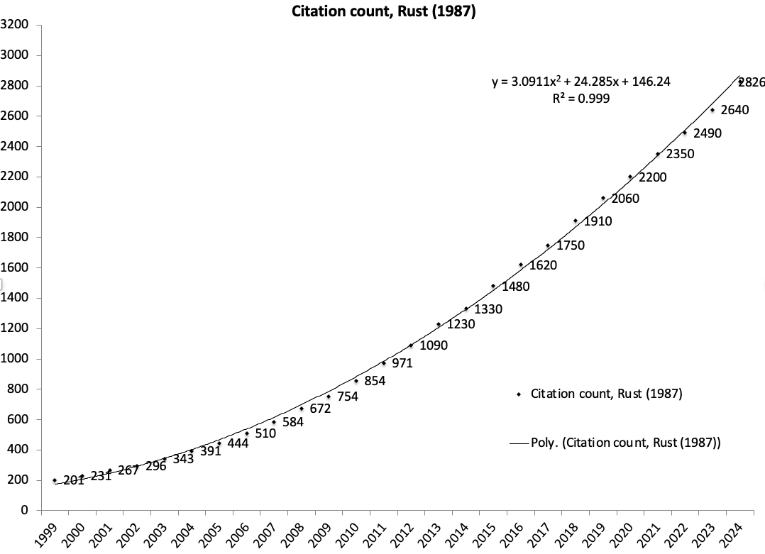 Dynamics of citation count of Rust (1987) Zurcher paper
