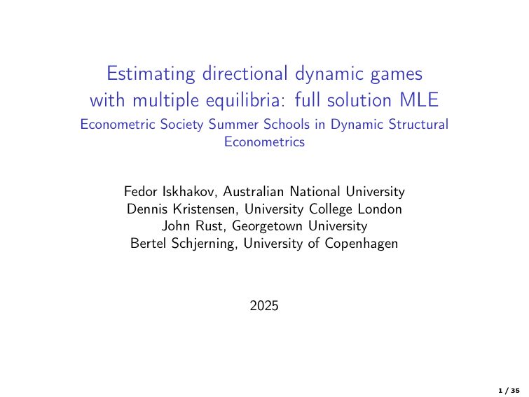📖 Estimation of Directional Dynamic Games with Multiple Equilibria#